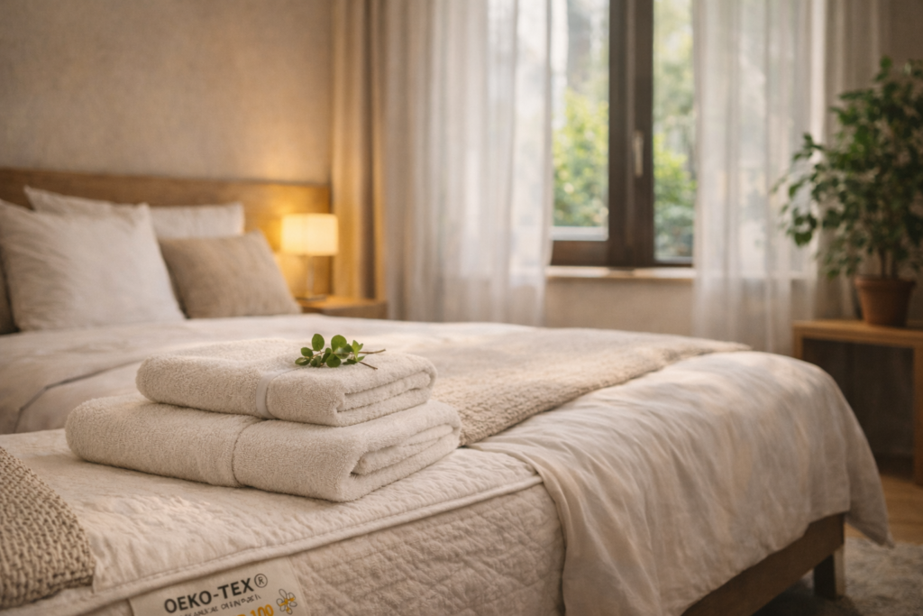 All’Eco Hotel Milano una parte rilevante della biancheria e delle dotazioni tessili è eco-certificata e in puro cotone con certificazione OEKO-TEX®.